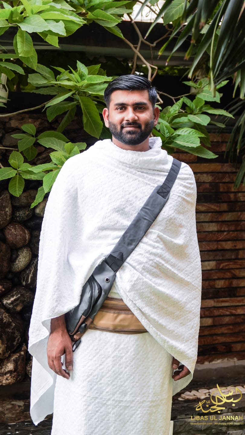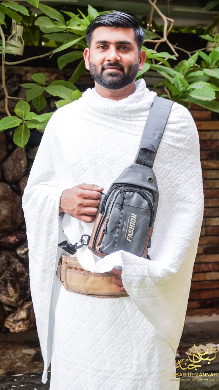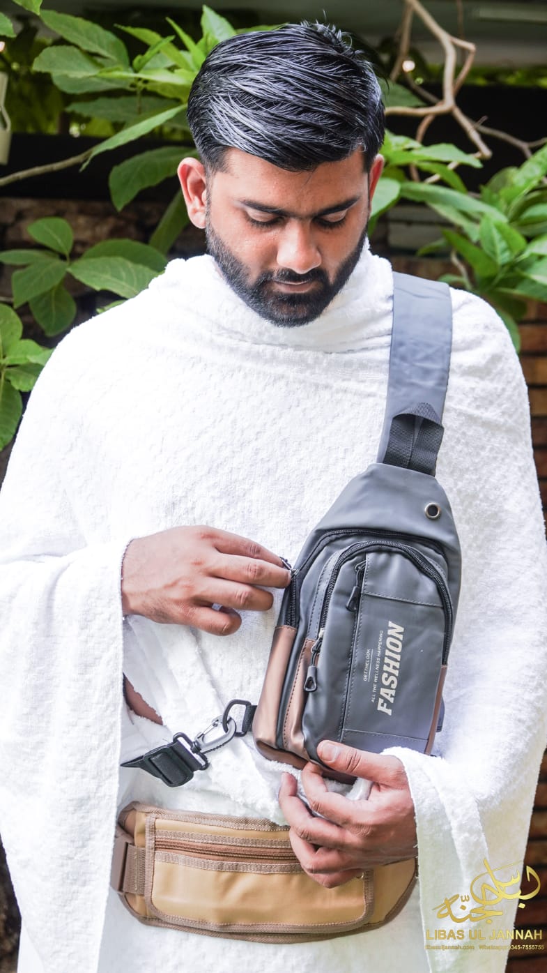 Premium towel ihram with high GSM (1000 grams). Extremely soft, plush, and ideal for those who seek comfort with a heavier feel. Best choice for sensitive skin and long travel hours.